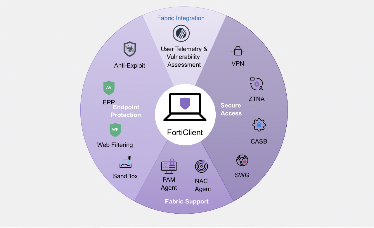 FortiSASE provides a converged SD-WAN and cloud-delivered security solution that is managed from a single console: FortiManager. It uses a unified agent (FortiClient), which helps organizations reduce their security vendor footprint. FortiClient is referred to as a unified agent because it provides features such as endpoint protection for vulnerability tracking, ZTNA, CASB, SWG, or VPN, which helps organisations unify the agents they may have deployed over multiple years.