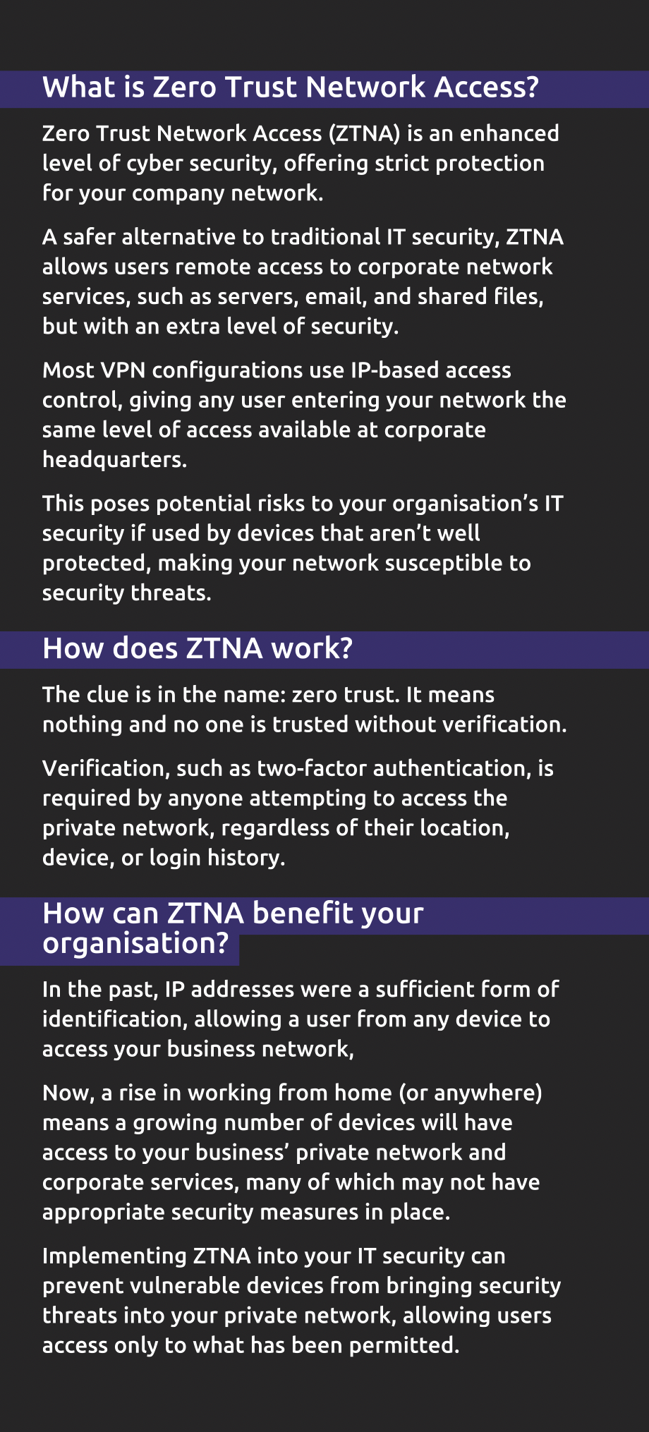 While many businesses are realising the benefits in using Zero Trust Network Access (ZTNA) to connect those working from home, it has advantages beyond that, O’Hagan adds.